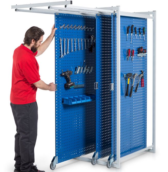 De werkbanken kunnen worden uitgerust met het modulaire Sovella Perfo zuilensysteem. Met dit systeem creëert u eenvoudig een complete werkplek met gereedschapsborden, haken en accessoires. Gereedschap kan overzichtelijk worden opgehangen, waardoor medewerkers sneller en efficiënter kunnen werken.